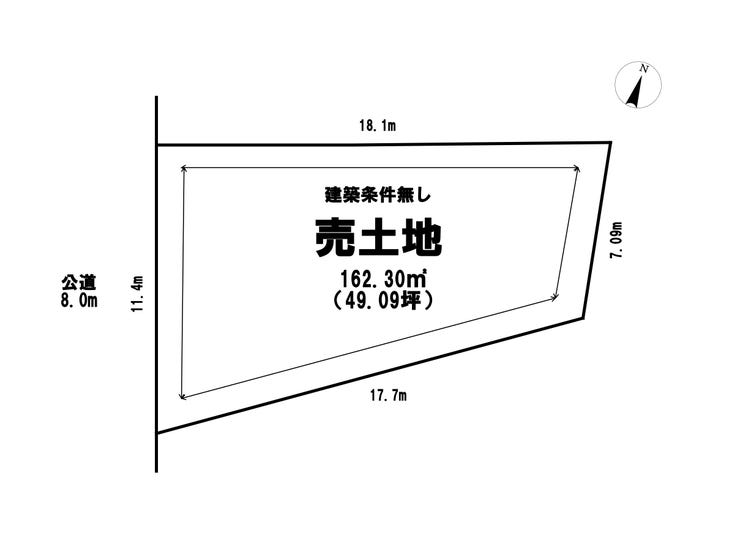 土地面積 公162.3㎡(49.09坪) 接道 西側(公道)幅 約8.0m 間口 約11.40m
